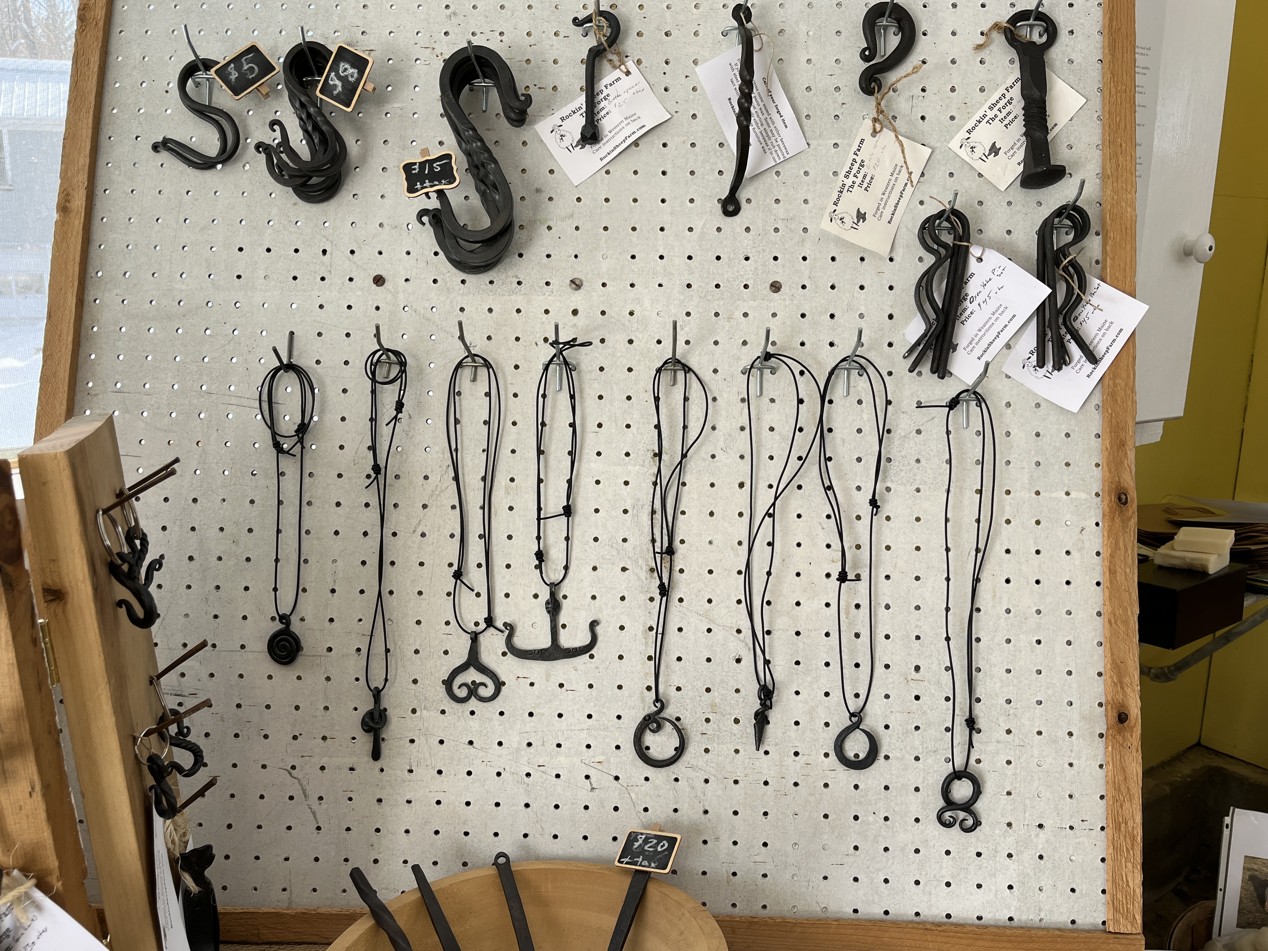 My forging teacher, Stan, and I produce tools and jewelry as we can. All are forged the old fashioned way with hand cranked fans and coal.